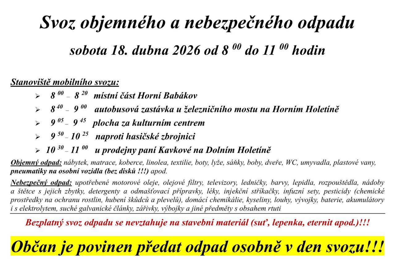 Svoz objemného a nebezpečného odpadu